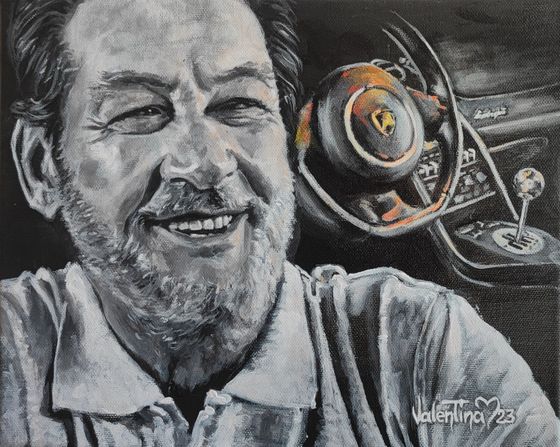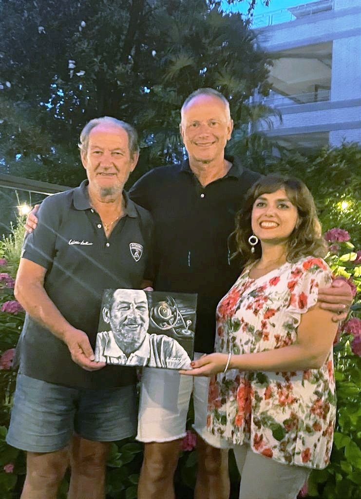 Raffaello Porro, co-organizzatore del Concorso Italiano di Monterey, mi ha scelta per realizzare l'opera che verrà assegnata alla Lamborghini più bella dell' anno direttamente dall' ex-pilota e collaudatore Valentino Balboni, che ho avuto l'immenso onore di conoscere e a cui ho consegnato la mia tela.